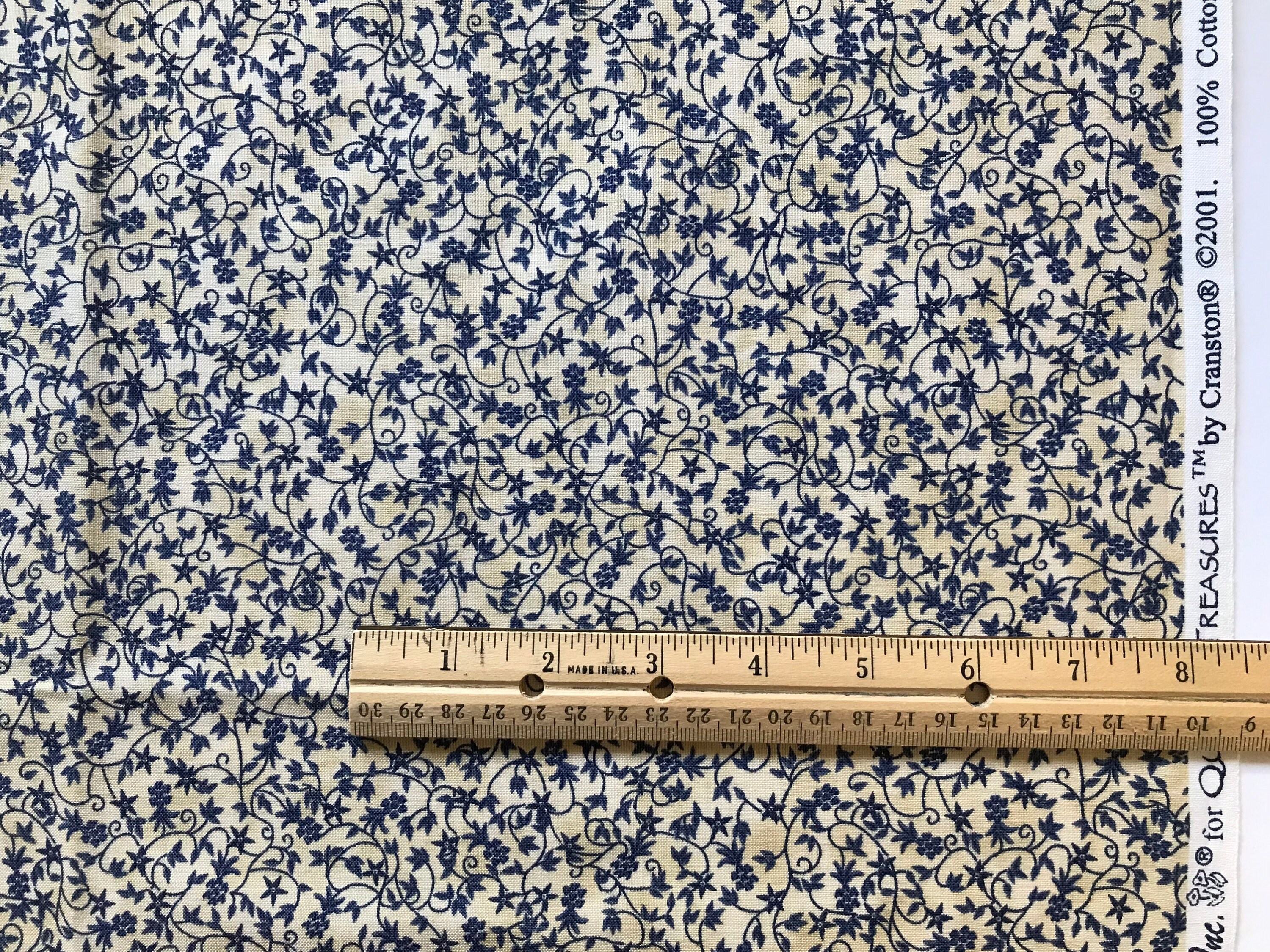 Small Floral Vine Print Fabric Dark Blue Flowers On A Etsy
