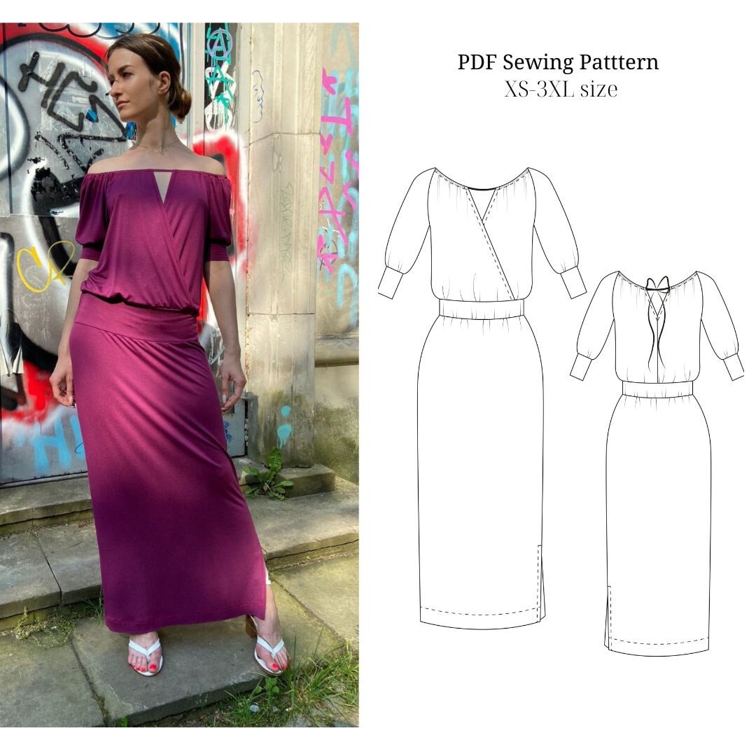 Sewing Pattern For Women S Dress Off Shoulder Dress Etsy